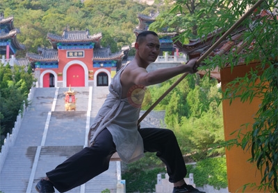 34th Shaolin warrior monks. He started to study Sanda plus traditional Chinese Kung Fu at Shaolin Monastery at a very young age. During his study, he earned many championships of various Shaolin Chuan and kickboxing competitions. He's very skilled in traditional shaolin kung fu Chuan and its applications and Sanda. He is also an expert with different shaolin weapons, including the spear and sword, spear and staff, Chi kung, and many others.
