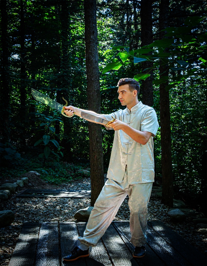 Since 2016, he has been at the Shaolin Martial Arts Academy of Kunyu Mountain China, focusing on traditional Wing Chun, Ba ji Quan, Tai Chi, and Chi Kung. His dedication and natural talent led him to become Shi Fu Guo's formal disciple in 2018.